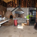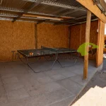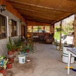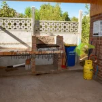 Amplio quincho techado con lavaplatos, horno de barro y asadera.